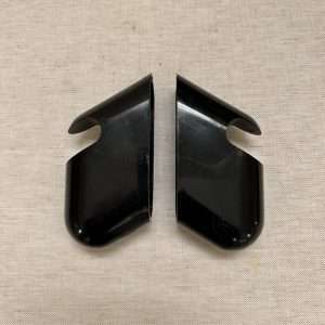 Materiali: gambe in legno, pelle scamosciata, maniglie in ferro e piedini in gomma antiscivolo